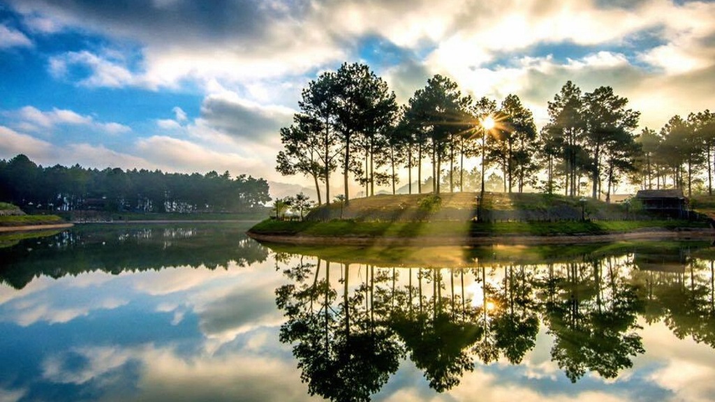 As seen above, Ang Hamlet is as beautiful as a watercolor painting. There are traditional stilt houses, hidden under the vast green foliage. Next to the village is a natural lake with an area of 5 hectares surrounded by green pine forests, planted on red-brown Feralit hills. In the distance, the scenery of the Moc Chau plateau, especially in spring, with tea hills, green meadows, ban flowers, apricot flowers, and plum blossoms in the white forest adorned the natural beauty of Ang hamlet.