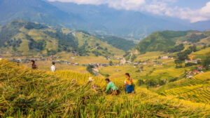 In the midst of growing and modernizing Sapa tourism, Sau Chua is one of the few villages that still retain the pristine beauty of mountains and forests, green valleys, the sea of white clouds, and traditional Hmong houses. Sau Chua will welcome visitors with the cool green color of the majestic forests, the fields behind the house and the curved terraces winding close to the foot of the mountain. Here because the residents are still quite sparse, the houses are often far apart, surrounded by gardens and beautiful green corn fields.