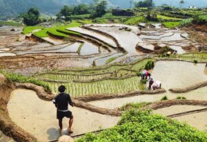 The land of Ta Phoi still retains the pristine features of the green forests embracing the hills. Visiting the commune, you will go through winding roads, one side is green trees, and the other side looks down the beautiful valley. Similar to Sapa, Ta Phoi also has fog covering the distant mountains and hills every morning. About Ta Phoi Lao Cao commune, visitors should take the time to visit the villages located high in the commune. Following the winding slopes, you will come to the residence of the Mong, Red Dao, Giay, Xa Pho, etc. Simple rustic houses, mixed with orchards, rice fields, etc. A beautiful and peaceful picture.