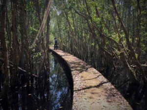 Walk through the Melaleuca Forest also peaceful and interesting experience, the walking path loop which is about 5 km and paved, so it’s easy to walk on.. You will also see some wooden bridges or wooden planks to test your balance.